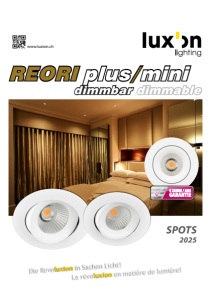 www.luxion.ch SPOTS 2025 Die Revoluxion in Sachen Licht! La révoluxion en matière de lumière! dimmbar dimmable dimmable REORI plus/mini 5 JAHRE / ANS GARANTIE